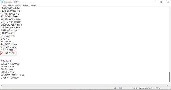 里面的SH_KEY,默认值为18(alt),建议更改为16(shift)